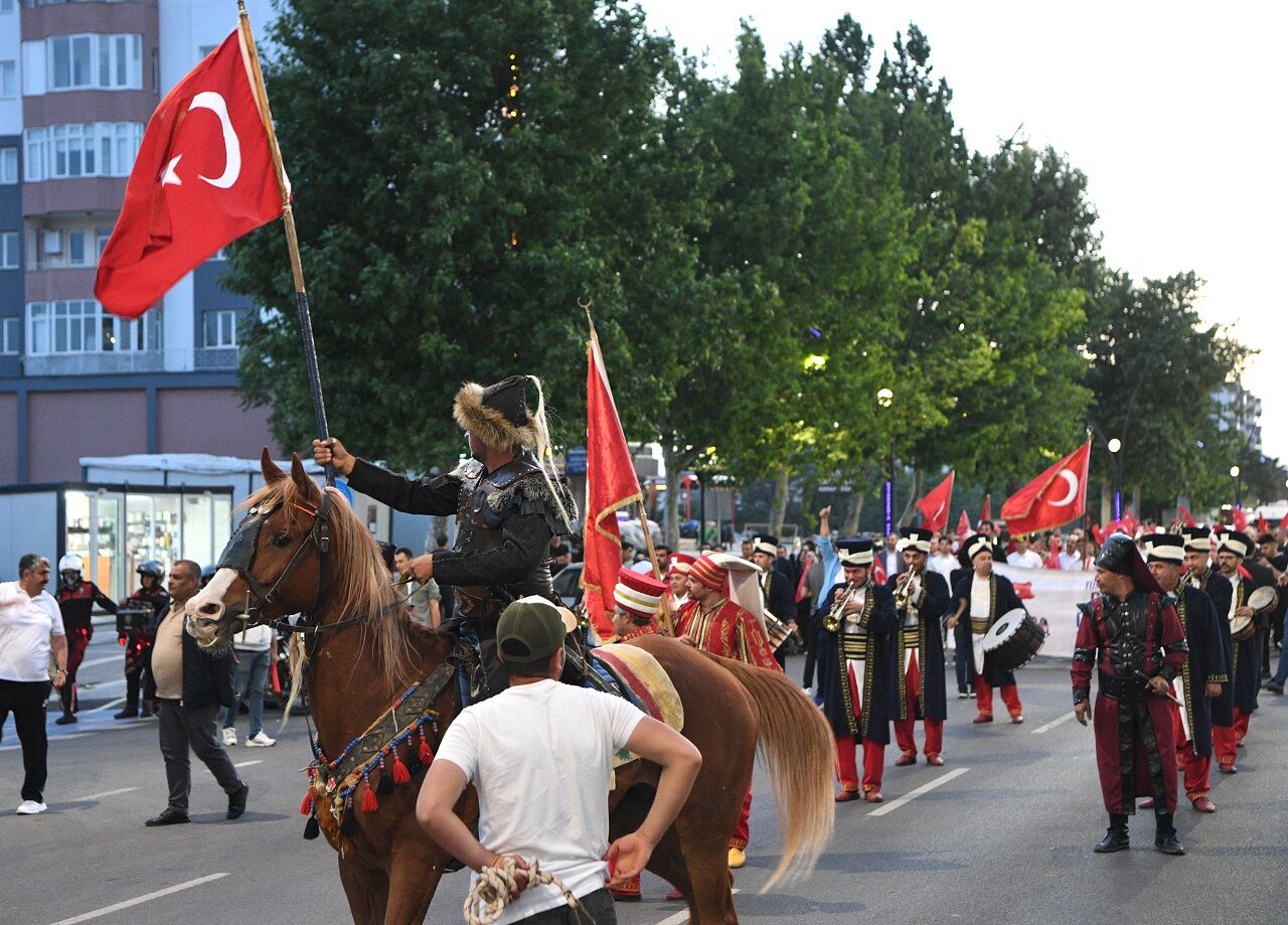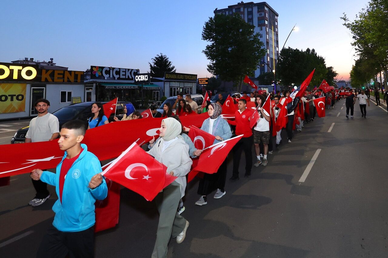 Kutlamaların kalbi Onikişubat Parkı’ndan attı. Sabah saatlerinden itibaren toplanan coşkulu kalabalık, kortej yürüyüşü için marşlar ve sloganlarla alandaydı. Yürüyüş rotası boyunca balkonlar ve yol kenarları vatandaşların alkışlarıyla dolarken, Kahramanmaraş sokakları kırmızı beyaza büründü. Kortejin son durağı ise Necip Fazıl Kısakürek Kültür Merkezi oldu.
