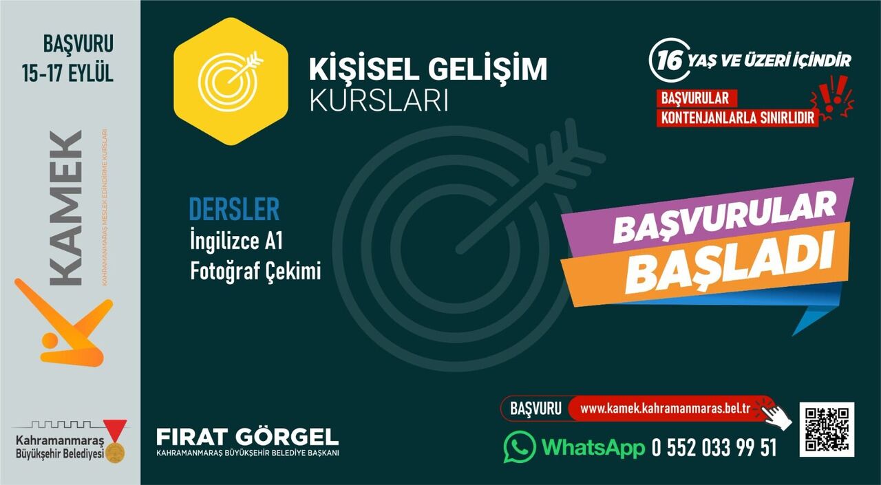 Kurslara başvurular, 16 yaş ve üzeri tüm vatandaşlara açık. Başvurular, “kamek.kahramanmaras.bel.tr” internet adresi üzerinden çevrimiçi olarak yapılabiliyor ve 17 Eylül Çarşamba günü mesai bitiminde sona erecek. Yetkililer, başvuruların kontenjanlarla sınırlı olduğunu ve erken kayıt yaptırmanın avantajlı olacağını belirtti.