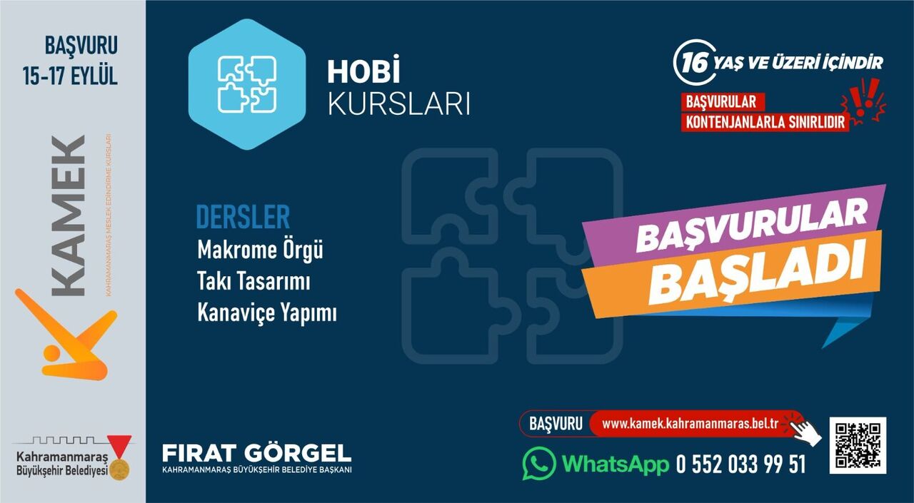 Yeni dönem başvurularının başlamasıyla birlikte, Kahramanmaraşlılar hem mesleki alanda kendilerini geliştirme hem de hobi ve sanat yoluyla kişisel yeteneklerini keşfetme fırsatı bulacak. Büyükşehir Belediyesi, KAMEK ile şehrin eğitim alanında ulaşılabilirliğini artırmayı ve vatandaşların yaşam kalitesini yükseltmeyi sürdürüyor.