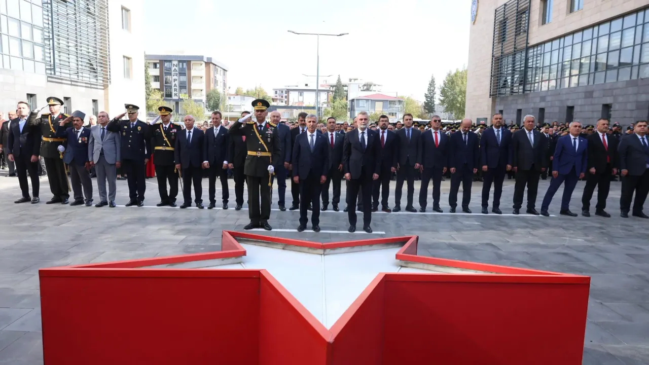 Törende; Kahramanmaraş Valisi Mükerrem Ünlüer, Garnizon Komutanı Tümgeneral Ahmet Gülmüş ve Büyükşehir Belediye Başkanı Fırat Görgel, Atatürk Anıtı’na çelenk bırakarak saygı duruşunda bulundu. Ardından İstiklal Marşı okundu.