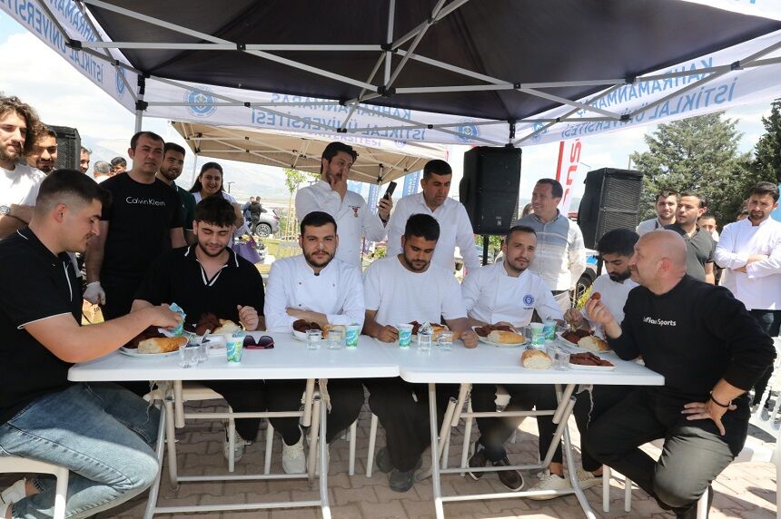 Kahramanmaraş İstiklal Üniversitesi (KİÜ), Akmansoy Marketler iş birliğiyle gerçekleştirdiği etkinlikte öğrencilere 500 kilogram irişkit ikram etti. Üniversite yerleşkesi içinde kurulan 46 metre uzunluğundaki dev mangalda pişirilen irişkitler, öğrencilere hem sınav sonrası motivasyon hem de yöresel lezzet deneyimi sundu.