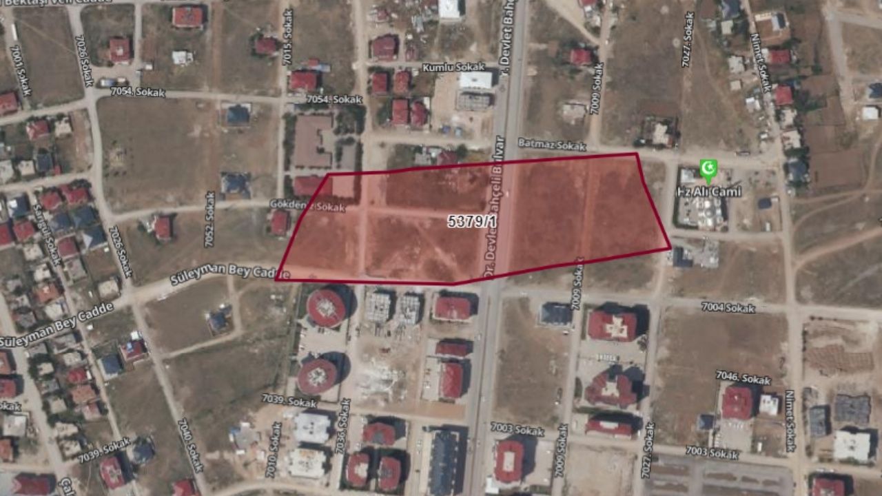 İlan detaylarına göre taşınmaz, 5379 ada 1 parsel numarasıyla kayıtlı. İmar durumu, 1/1000 ölçekli uygulama imar planına göre ayrık nizamda 2, 3 ve 4 katlı konut alanları ile yol alanlarını, ayrıca 5 katlı ticaret + konut yapılaşmasına uygun alanları kapsıyor.