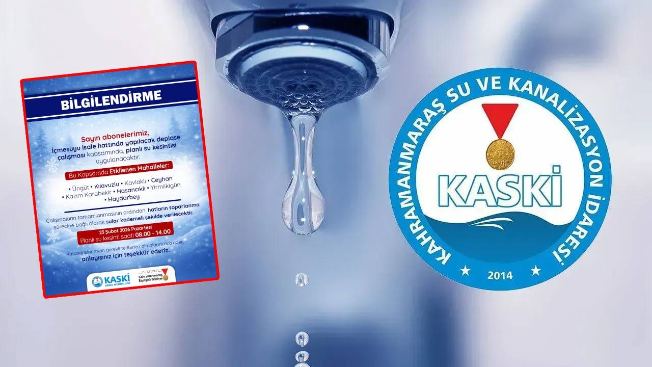 Kahramanmaraş Büyükşehir Belediyesi Su ve Kanalizasyon İdaresi Genel Müdürlüğü tarafından yapılan resmi açıklamaya göre, kent genelinde yürütülecek içmesuyu isale hattı deplase çalışması nedeniyle 23 Şubat 2026 Pazartesi günü bazı mahallelerde planlı su kesintisi uygulanacak.
