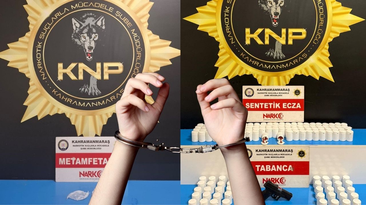 Kahramanmaraş’ta uyuşturucu ile mücadele kapsamında yürütülen çalışmalar, yeni bir başarıya daha imza attı. Narkotik Suçlarla Mücadele Şube Müdürlüğü ekiplerinin 6 ve 7 Şubat 2026 tarihlerinde gerçekleştirdiği operasyonlarda, toplamda 7.086 adet sentetik ecza hap, bir adet ruhsatsız tabanca ve yedi fişek ele geçirildi.