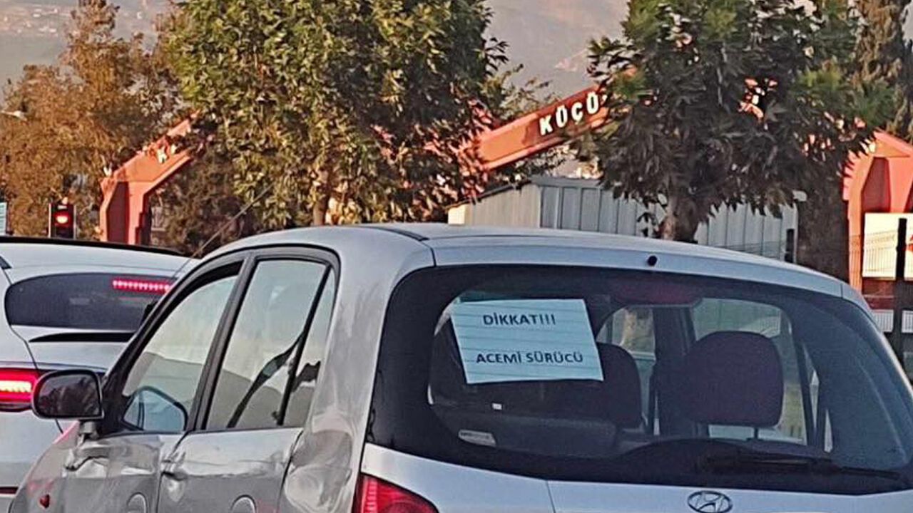 Kahramanmaraş’ta sürücünün otomobilinin arka camına astığı "acemi sürücü" notu o sırada trafikte olan sürücüleri gülümsetti.