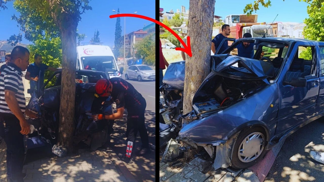 Çarpmanın şiddetiyle araç ön kısmından ağır hasar aldı ve sürücü araç içerisinde sıkıştı. İtfaiye ekipleri, özel kurtarma ekipmanları kullanarak sürücüyü bulunduğu yerden çıkardı.