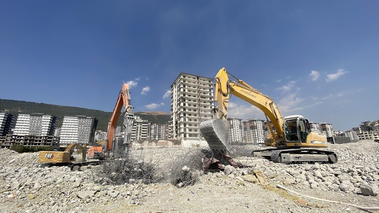 Kahramanmaraş’ta 6 Şubat 2023’te meydana gelen depremlerde ağır hasar gören binaların kontrollü yıkım ve enkaz kaldırma çalışmaları hız kesmeden sürüyor.