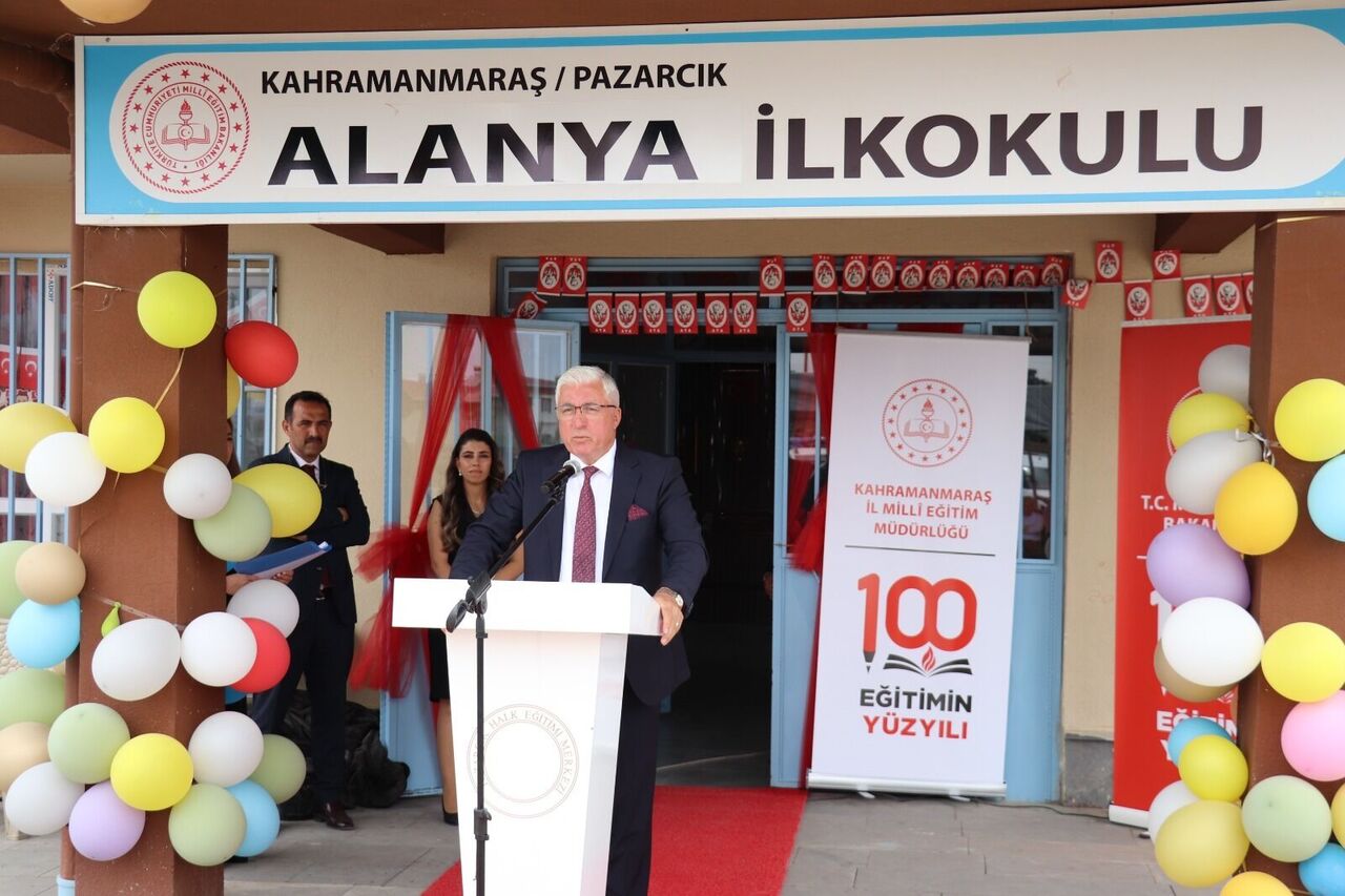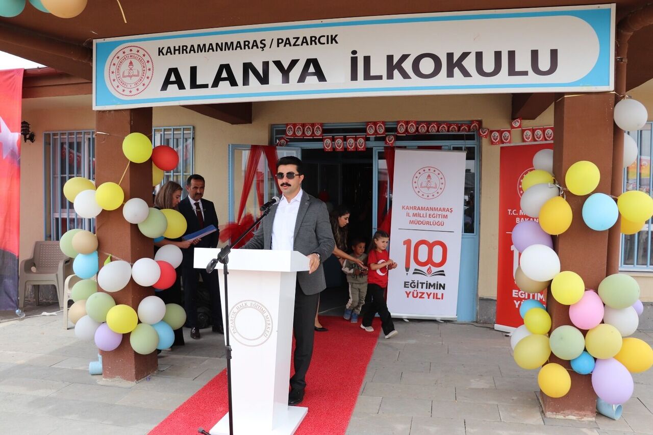 “Alanya’nın Yardım Eli Pazarcık’ta Bir Okul Olarak Yükseldi”Törende konuşan Alanya İlçe Milli Eğitim Müdürü Yusuf Yılmaz, Alanya’da yaşayan eğitim gönüllülerinin ve Hamdullah Emin Paşa Vakfı’nın katkılarıyla projenin hayata geçirildiğini belirtti.