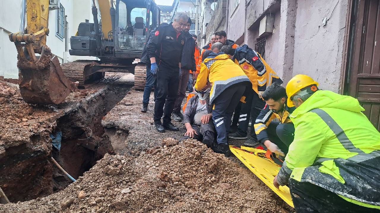 Çalışma esnasında toprak altında kalan bir işçi, itfaiye ekiplerinin müdahalesiyle kurtarıldı.