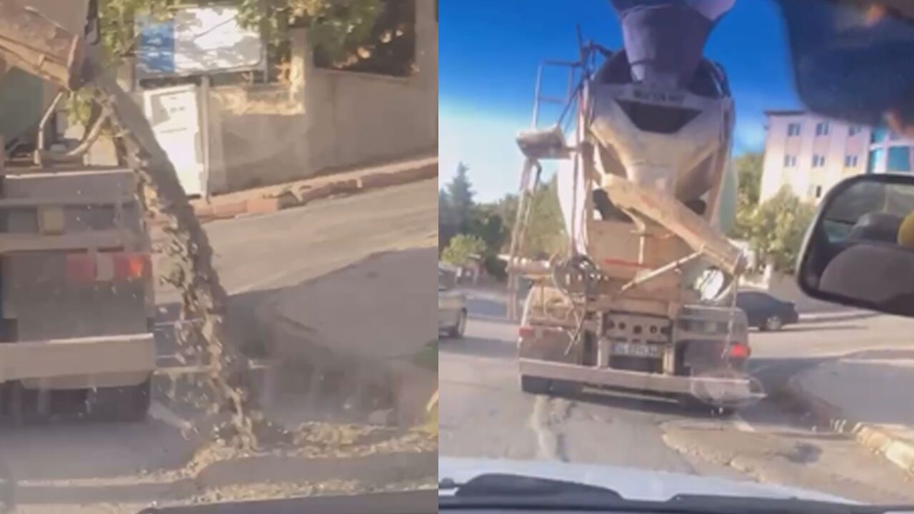 Onikişubat ilçesi Kazma Caddesi'nde seyir halindeki bir beton mikseri, yol ortasına beton döktü. Mikser sürücüsünün betonu yola döktüğü anlar bir vatandaşın cep telefonu kamerasına yansıdı. Görüntülerde, beton mikserinin ileriye doğru gittiği esnada betonu yola döktüğü kaydedildi. Ayrıca başka bir sürücünün uyarılarına rağmen beton mikseri şoförünün yoluna devam ettiği görüldü.