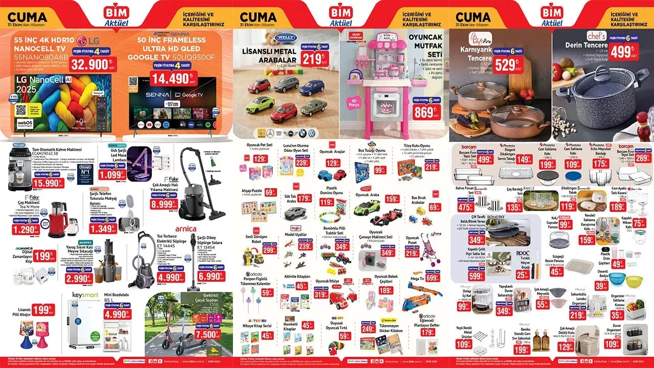 BİM marketin her hafta cuma günleri için hazırladığı aktüel ürünler kataloğu, 31 Ekim 2025 itibarıyla reyonlarda yerini aldı. Bu hafta elektrikli scooter, televizyon, mini buzdolabı ve daha birçok üründe kaçırılmayacak indirimler bulunuyor.