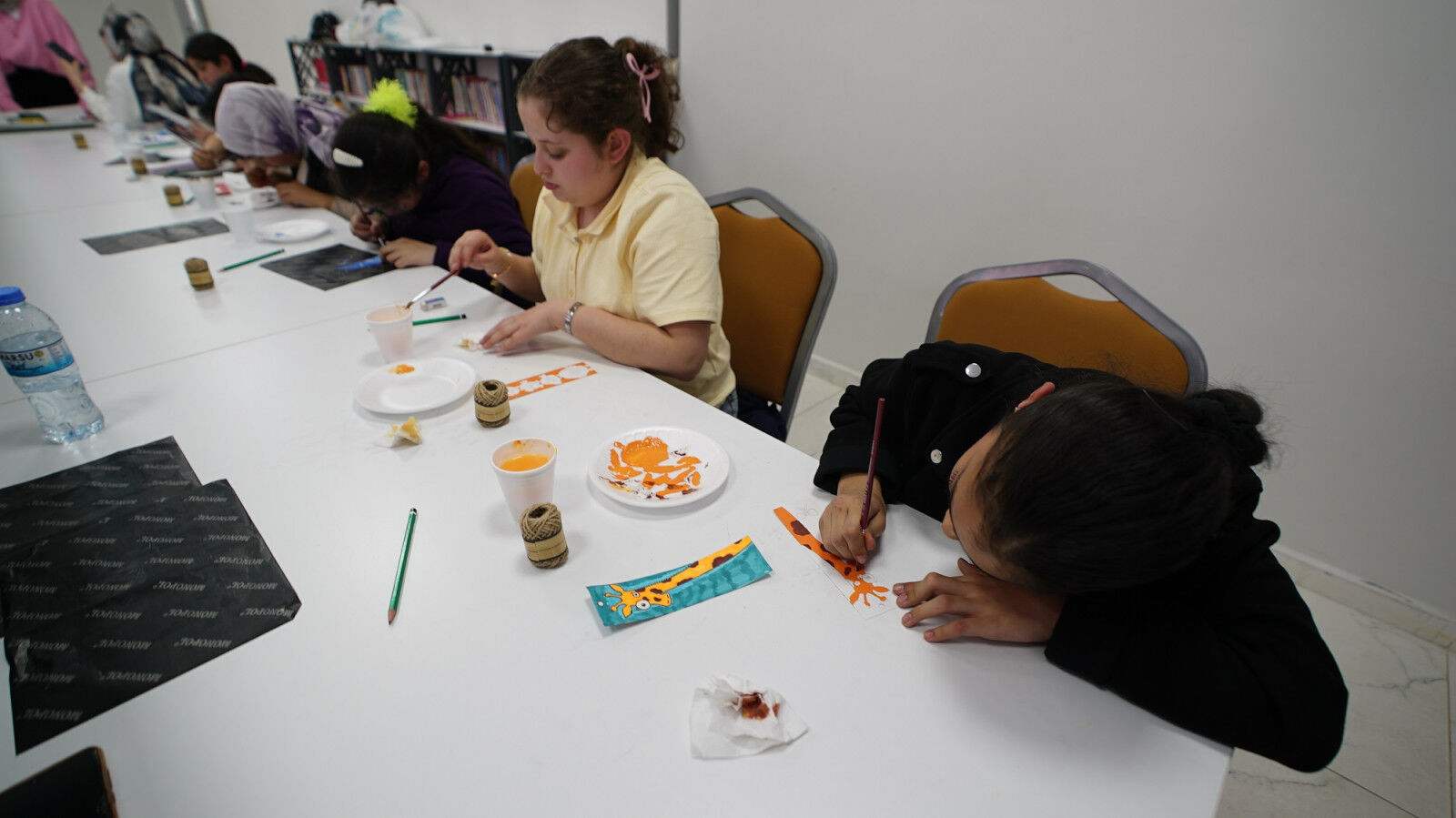 Kitap ayracı hazırlama sürecinde çocuklar, hem ince motor becerilerini geliştirdi hem de estetik bakış açılarını ortaya koydu.