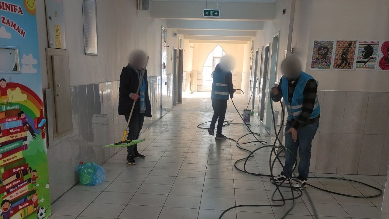 Gelen talepler doğrultusunda harekete geçen ekipler, sınıflardan koridorlara, lavabolardan okul bahçesine kadar geniş bir temizlik uygulaması gerçekleştirdi.