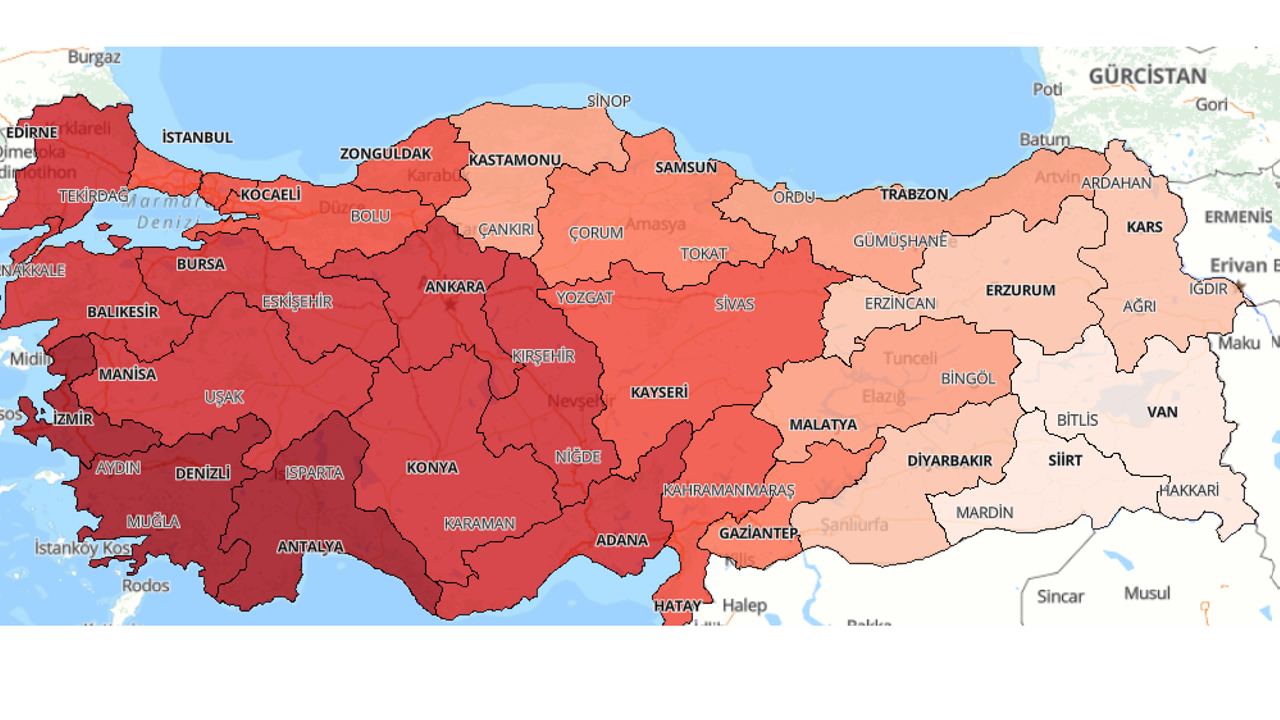 Sigortalılık oranının en düşük olduğu il yüzde 28 ile Şırnak olurken onu sırasıyla, yüzde 31'le Gümüşhane ve Siirt, yüzde 33'le Rize, yüzde 34'le Bayburt izledi.