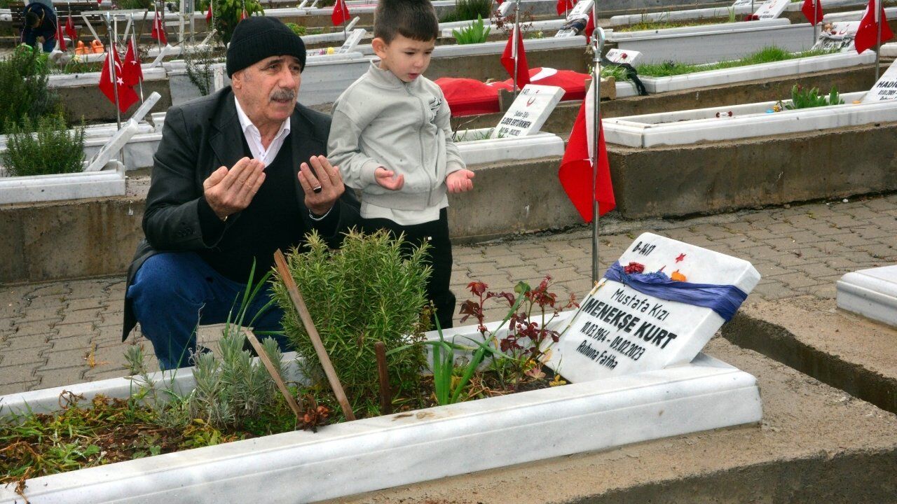 Depremde eşi Menekşe Kurt’u kaybeden Muzaffer Kurt, bayram ziyaretine torunları ve çocukları ile birlikte geldi. Eşinin mezarı başında dua eden Kurt, onsuz bir hayatın çok zor olduğunu ifade ederek şunları söyledi: "Eşim Menekşe hatunu bayram ziyaretine geldik. Depremde şehit olan eşimin yanına geldik torunlarımla, çocuklarımla beraber birlikte. Konuşacak kelimelerimiz yok, onsuz hayat zor. Allah, bütün şehit yakınlarına da sabırlar versin. Allah bir daha o günlerimizi yaşatmasın. 6 Şubat öncesi bayramlarımız çok iyiydi. Şu an bayramdayız ama acılar içerisindeyiz. 'Herkes kara bayram yapıyor' desem inanır mısınız? O tatlı, huzurlu, iyi günlerimiz yok. Şu an etrafta gördüğünüz gibi bütün millet ağlamaklı bir şekilde yakınlarına, eşine, çocuğuna gelip ziyarette bulunuyorlar acılar içerisinde. Diyeceğim tek kelime, Allah'ım bir daha yaşatmasın."