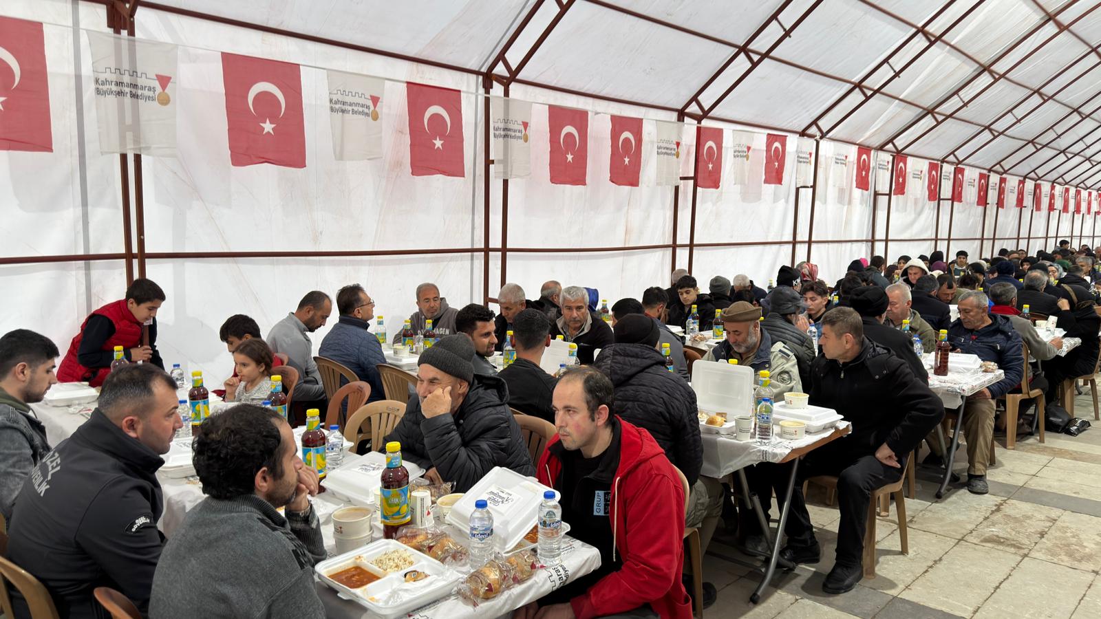 Kahramanmaraş Büyükşehir Belediyesi, Ramazan ayının ilk gününde şehri bir araya getirerek büyük bir dayanışma örneği sergiledi. Şehir merkezindeki 3 farklı noktada kurulan iftar çadırlarında binlerce kişi aynı sofrada oruçlarını açtı. Ramazan Sokağı, Milli İrade Meydanı ve Namık Kemal Mahallesi'nde kurulan iftar sofralarına yoğun ilgi gösteren Kahramanmaraşlılar, iftarlarını dualar eşliğinde açtı.