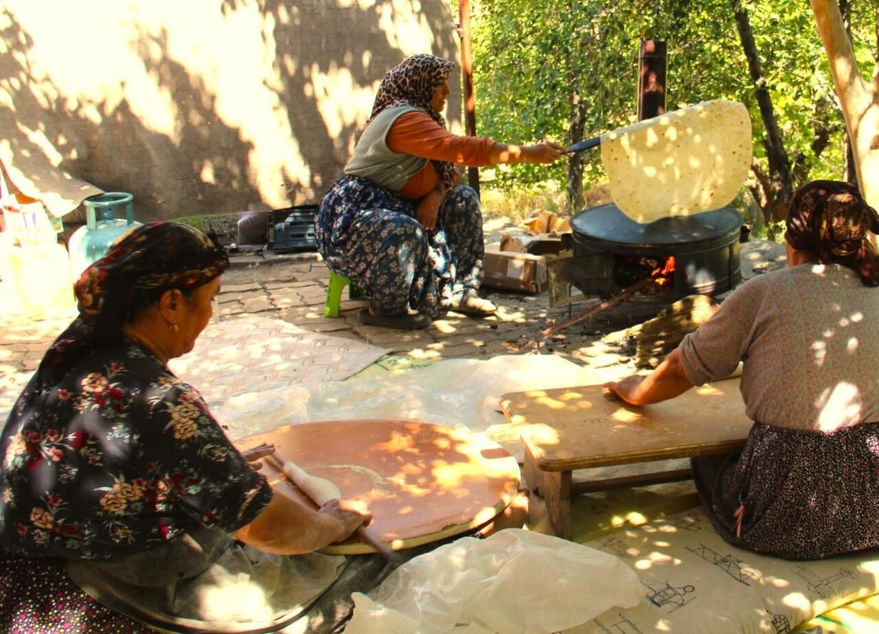 Yufka ekmeği yapımında yer alan Ayşe Gören, süreci şöyle anlatıyor: “Yaklaşan kış aylarına hazırlığımız sürüyor. Bunlardan biri de kışlık yufka ekmeği. Mahallenin kadınlarıyla bir araya gelip imece usulüyle ekmeğimizi yapıyoruz. Bu sadece ekmek yapmak değil; dayanışmayı, paylaşmayı ve kardeşliği yaşatmak demek.” Gören’in bu sözleri, sadece üretim odaklı bir çalışmanın ötesinde, sosyal bir bağ kurma biçimini de işaret ediyor. Kadınlar bu gelenek sayesinde, yıllardır süregelen bir kültürü yaşatmanın gururunu taşıyor.