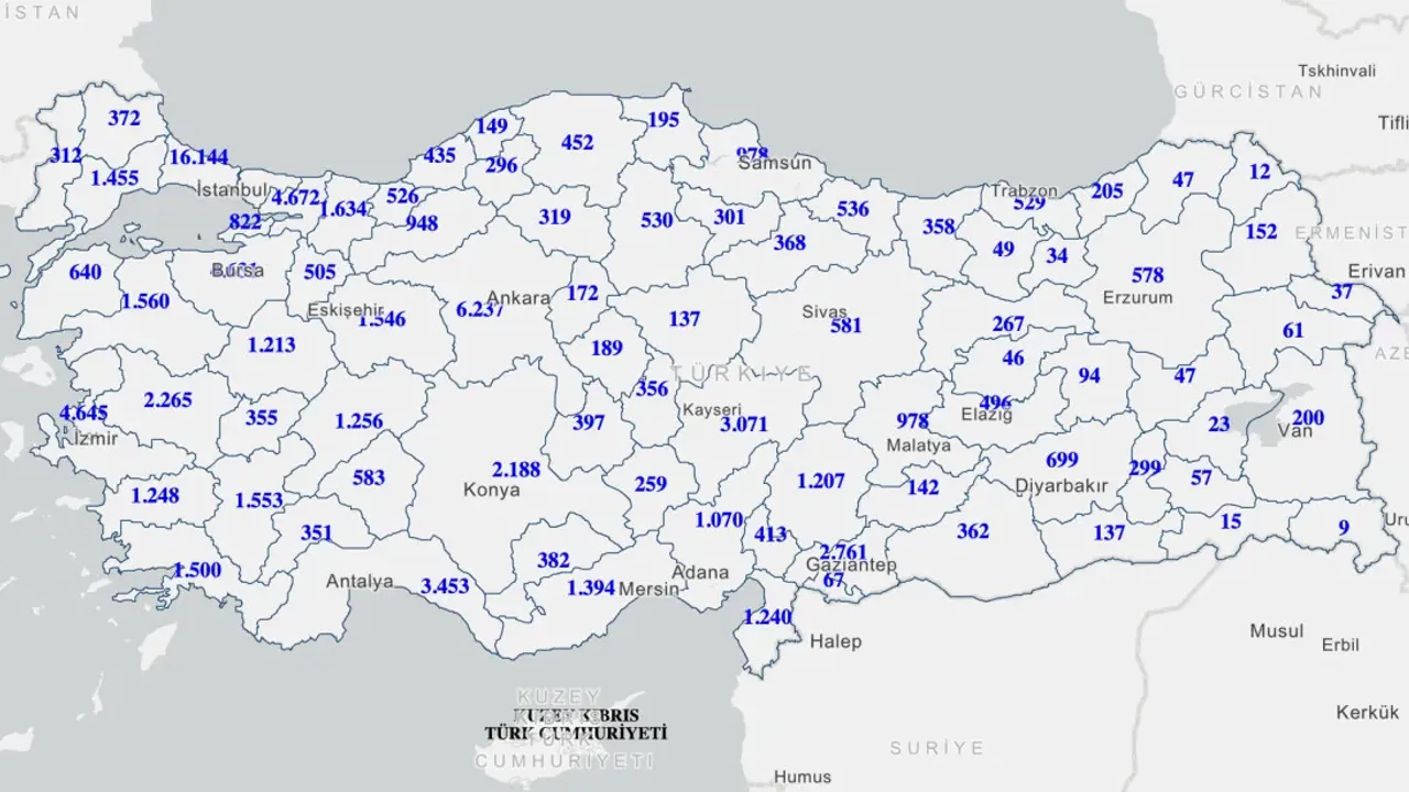 Bu şehirleri Antalya (3.471), Gaziantep (2.757), Konya (2.199) ve Manisa (2.265) takip ediyor.