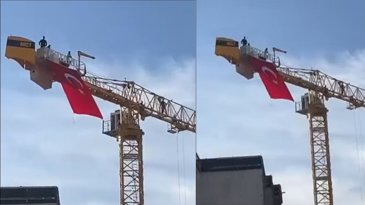 Kahramanmaraş Dulkadiroğlu Doğukent Güneşevler’de çalışan işçiler, 3 aydır maaş alamadıklarını belirterek kule vinçe çıkarak eylem yaptı.