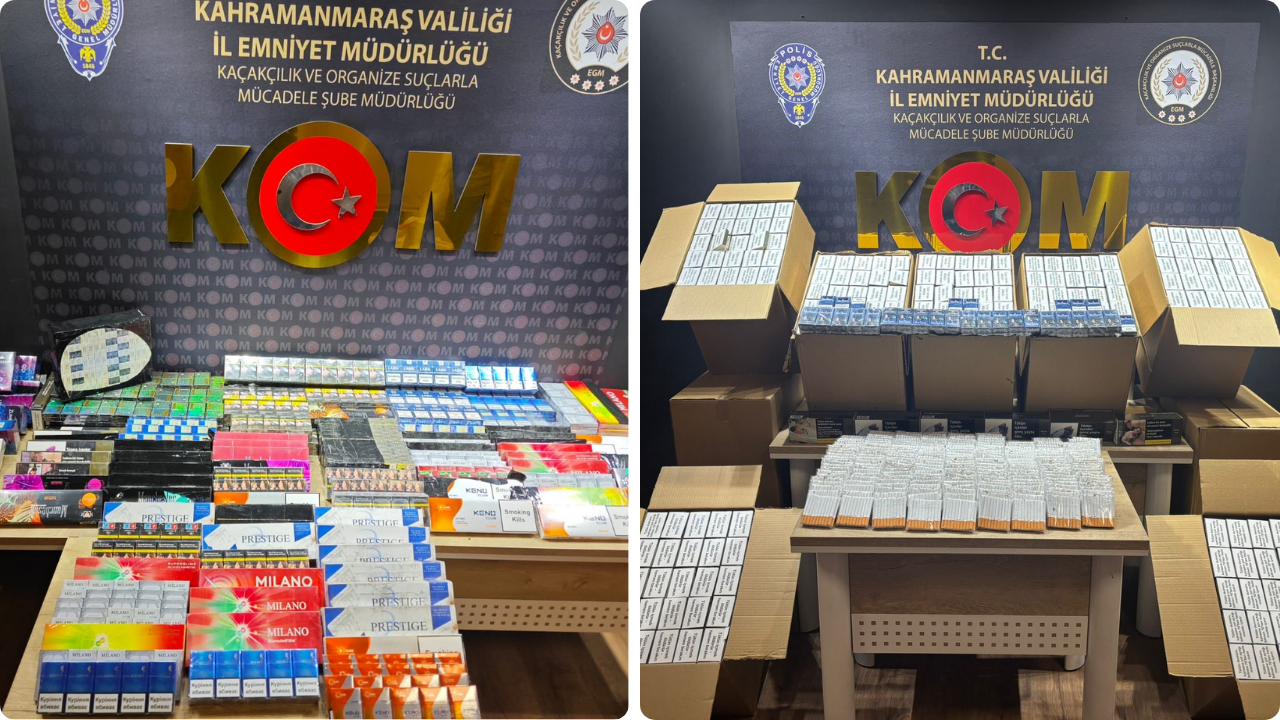 Kahramanmaraş Emniyet Müdürlüğü KOM ekipleri, 18-19 Kasım tarihlerinde gerçekleştirdiği iki ayrı operasyonda binlerce kaçak sigara ve makaron ele geçirdi. Toplamda 3.000'in üzerinde paket gümrük kaçağı sigara, 13.000’den fazla makaron ve dolu sigara bulundu. Olayla ilgili 2 şahıs hakkında adli işlem başlatıldı. Operasyonlar, tütün mamulleri kaçakçılığına karşı yürütülen kararlı mücadelenin bir parçası olarak değerlendiriliyor.