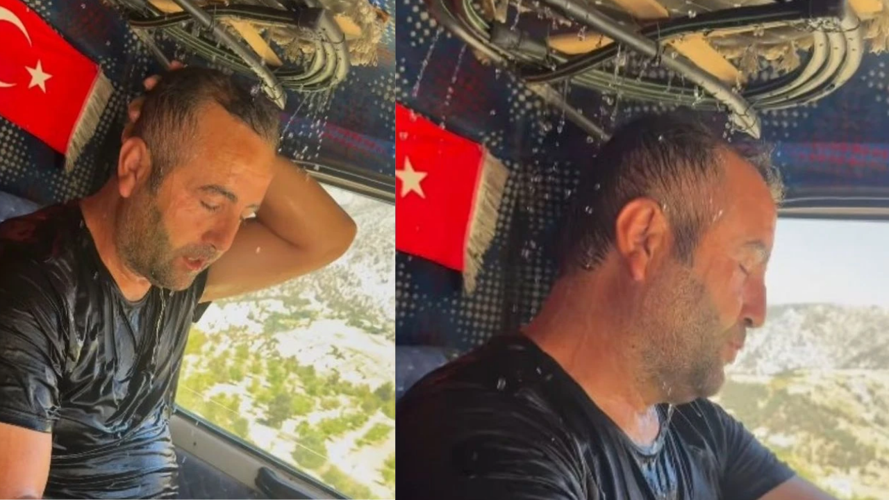Dökme, kamyonunun tavan kısmına yerleştirdiği basit bir damlama sulama sistemi sayesinde, seyir halindeyken baş ve omuz bölgesine yavaş yavaş damlayan suyla serin kalmayı başarıyor. Sistemin çalışması için sadece bir su haznesi ve birkaç hortum yeterli oluyor.