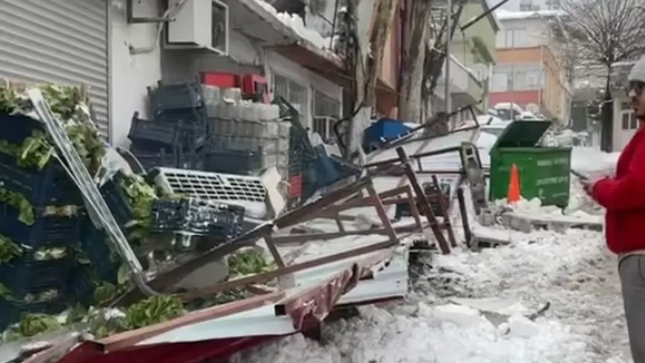 Olay, Onikişubat ilçesine bağlı Mağralı Mahallesi’nde yaşandı. Edinilen bilgiye göre, yoğun kar yağışı sonrası çatıda biriken kar kütlesinin ağırlığına dayanamayan iş yerinin çatısı büyük bir gürültüyle çöktü. Çöken çatı parçaları, kaldırım üzerinde bulunan sebze kasalarının üzerine savruldu.