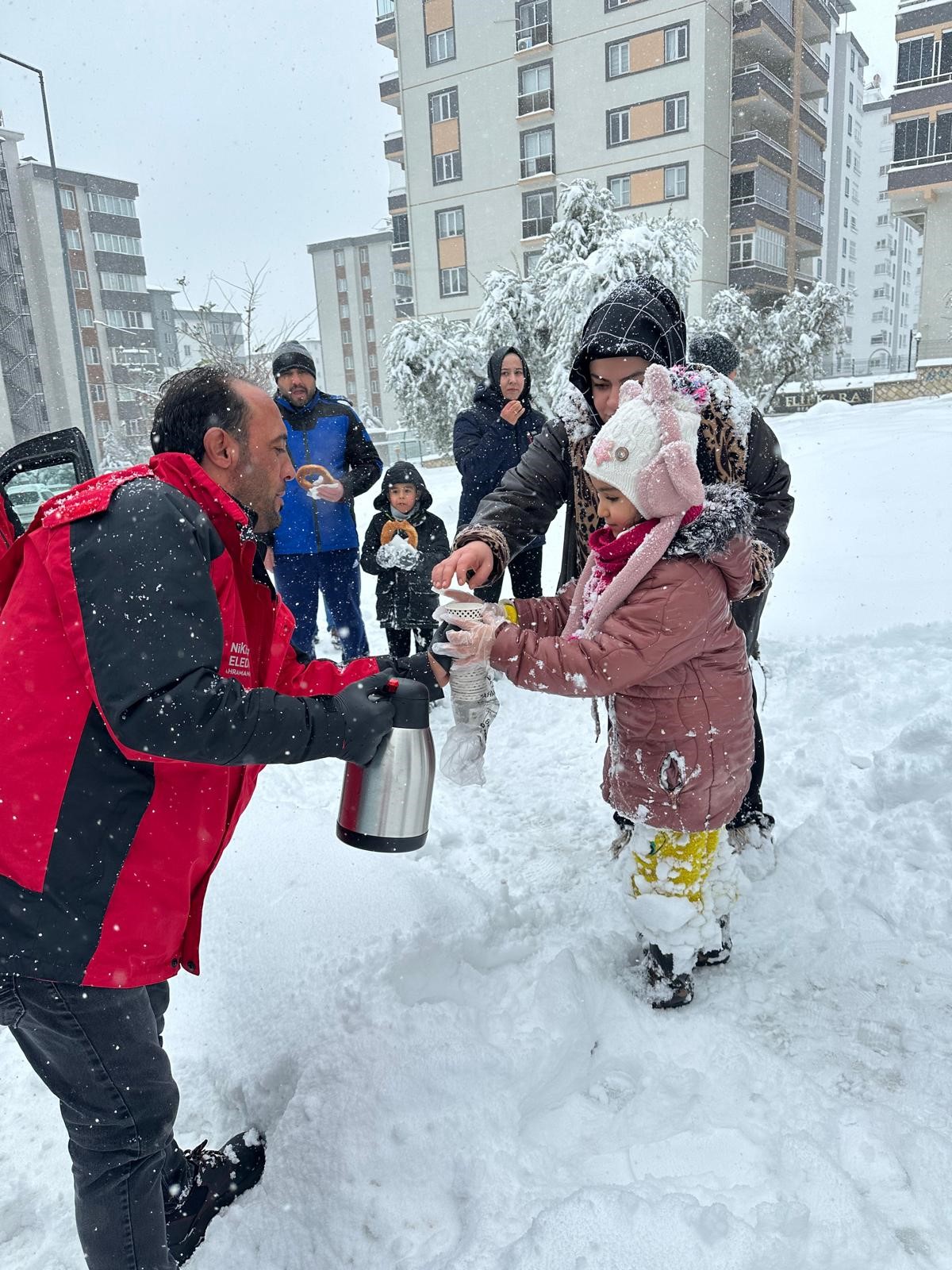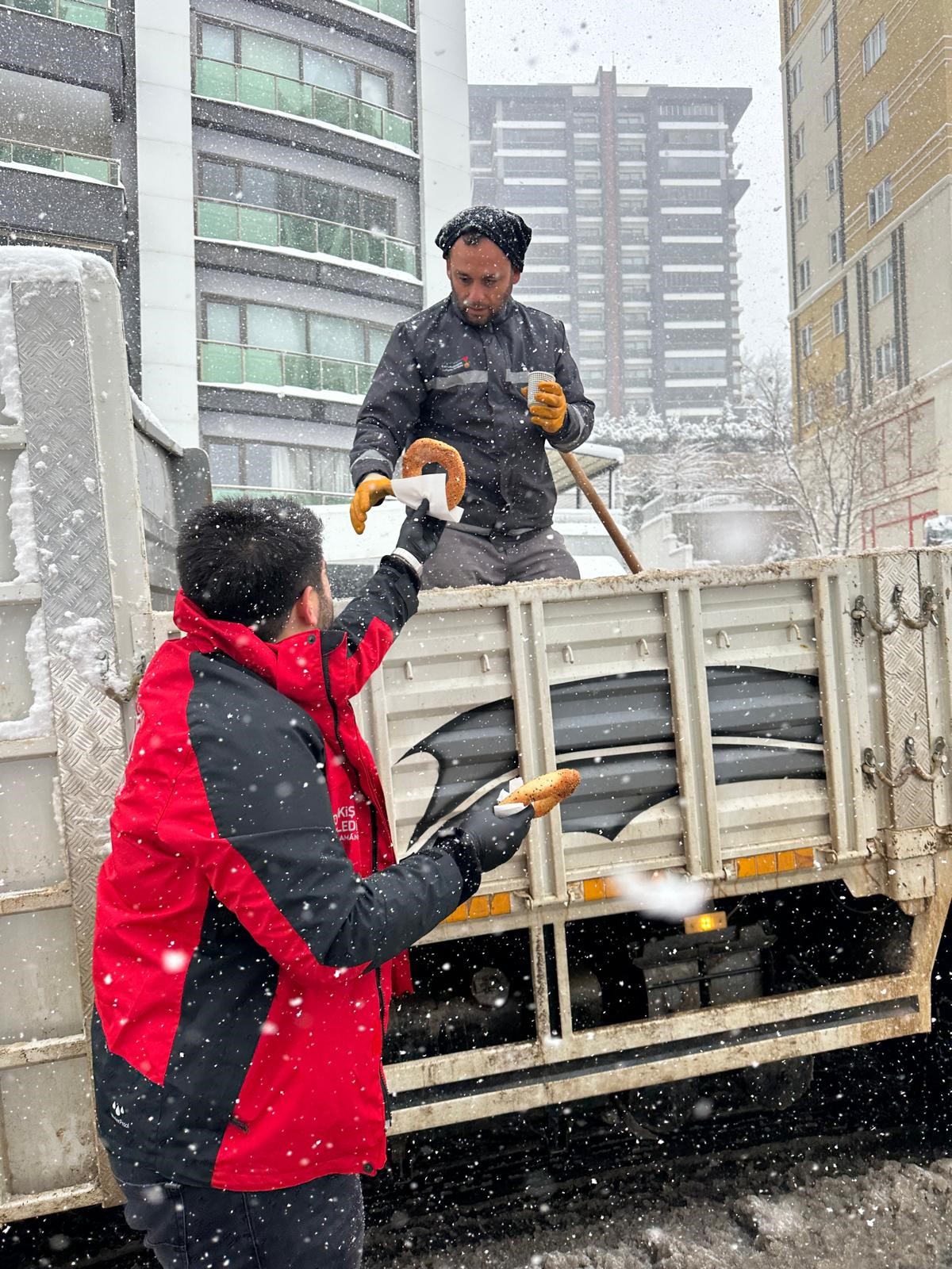 Onikişubat Belediyesi, "Dayanışma hiç bitmez" anlayışıyla hem sahada görev yapan ekiplere hem de vatandaşlara destek olmayı sürdürüyor. Kar yağışının yoğunlaştığı sabah ve akşam saatlerinde yapılan ikramlar, soğuk havada içleri ısıttı. Karla mücadele ekiplerinin moral ve motivasyonuna katkı sağlayan bu ikramlar, belediyenin sosyal belediyecilik anlayışının bir örneği oldu.