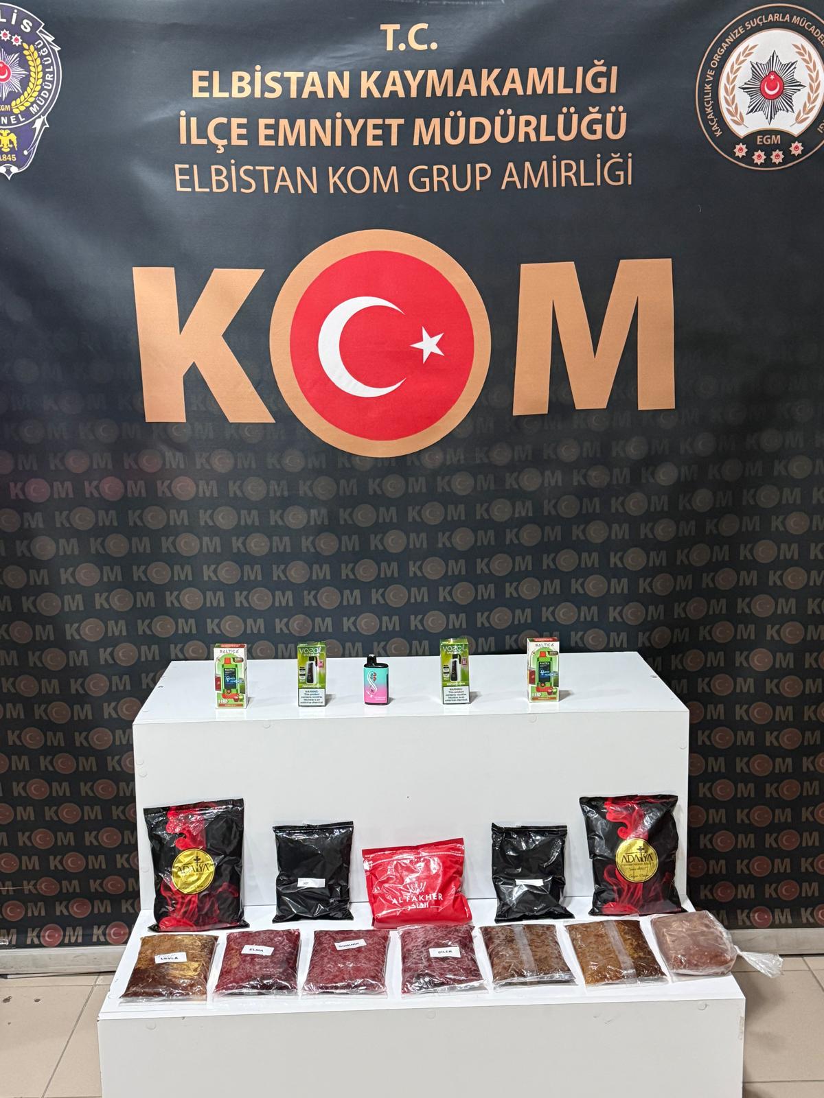 Elbistan KOM Büro Amirliği ekipleri tarafından 1 Şubat – 5 Şubat 2026 tarihleri arasında Elbistan ilçesinde gerçekleştirilen çalışmalarda ise farklı türlerde gümrük kaçağı ürünler tespit edildi. Operasyon kapsamında;