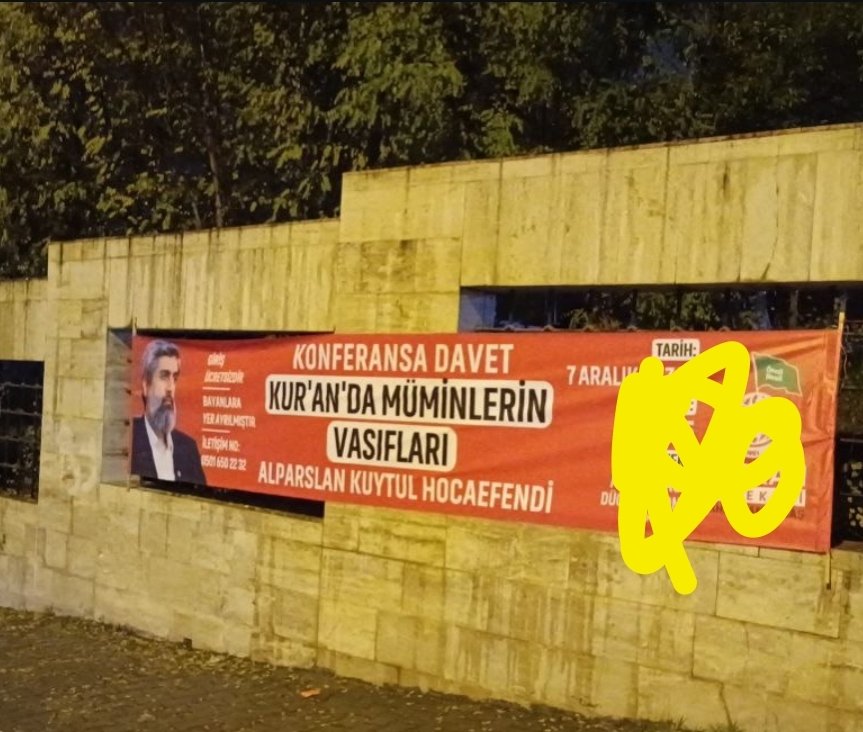 Kahramanmaraş’ta 7 Aralık’ta düzenlenmesi planlanan “Kur’an’da Müminlerin Vasıfları” isimli konferansın afişleri, şehir merkezindeki çeşitli alanlara asıldı. Ancak tanıtım afişleri, kimliği henüz belirlenemeyen kişiler tarafından sprey boya ile karalandı. Yapılan müdahaleler sonucu bazı afişlerin tamamen okunamaz hâle geldiği gözlemlendi. Olayın özellikle afişlerin daha görünür olduğu noktalarda yoğunlaştığı belirtildi.