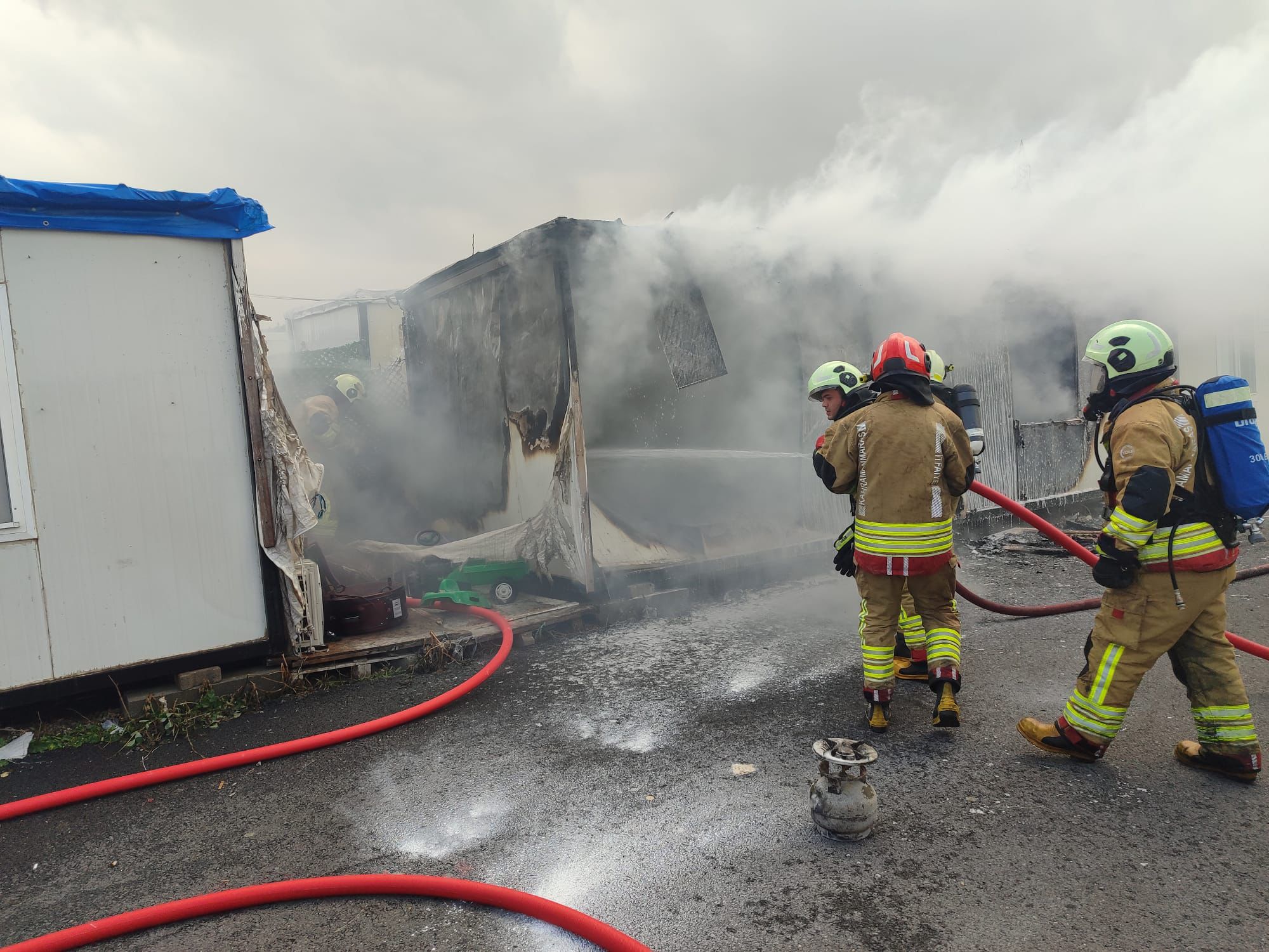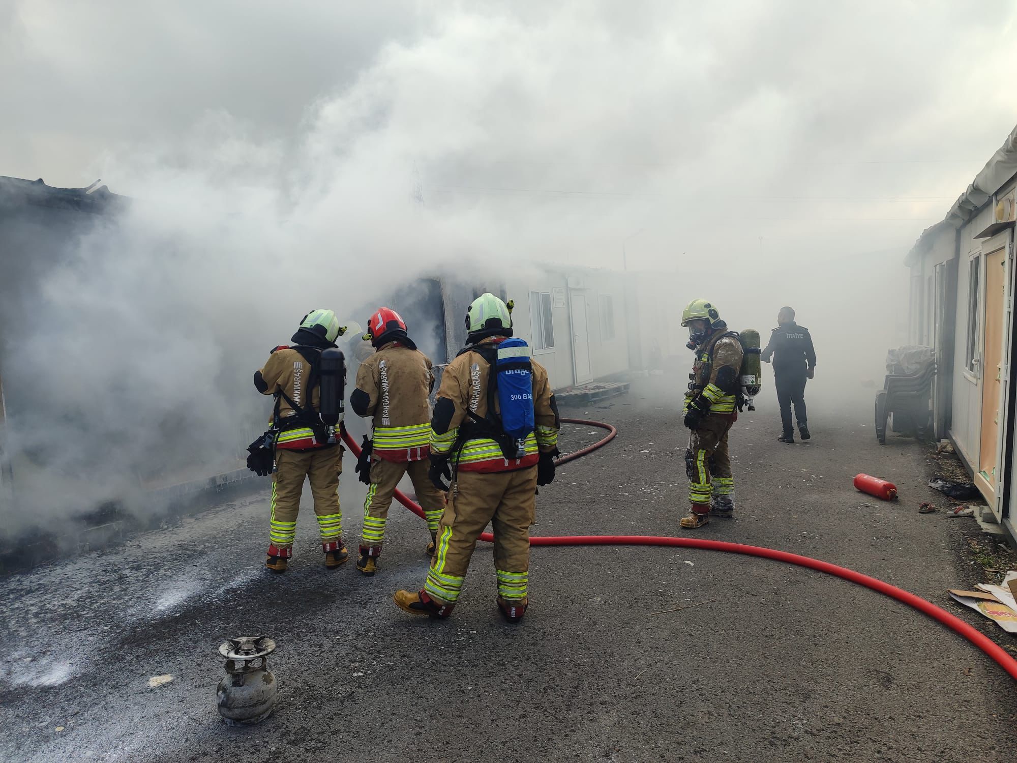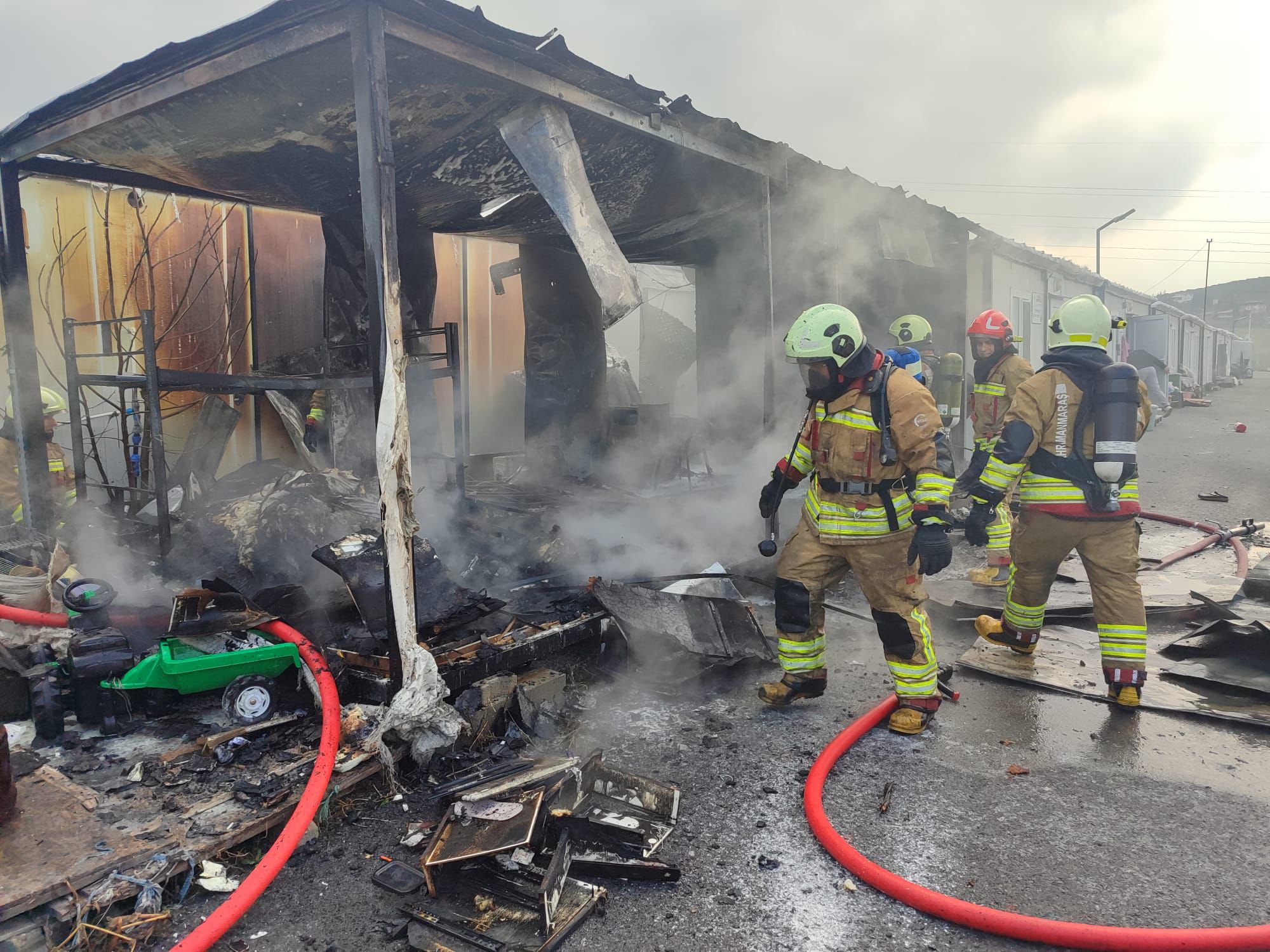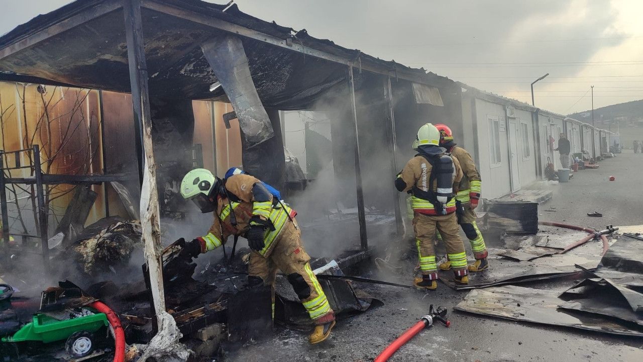 Konteyner kentlerde yan yana duran barınma üniteleri nedeniyle yangın riski her zaman yüksek. Ancak itfaiye ekiplerinin zamanında ve etkili müdahalesi, olası bir faciayı engelledi.