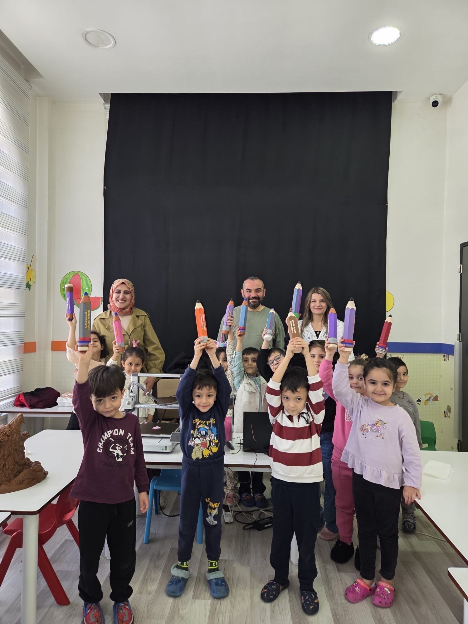Bugün minik öğrencilerimizle beraber 3D Yazıcı Atölyesindeydik. Teknolojinin büyülü dünyasını keşfeden çocuklarımız, hem üretim sürecini öğrendi hem de günün anısına kendi kalemliklerine kavuştu. 🚀