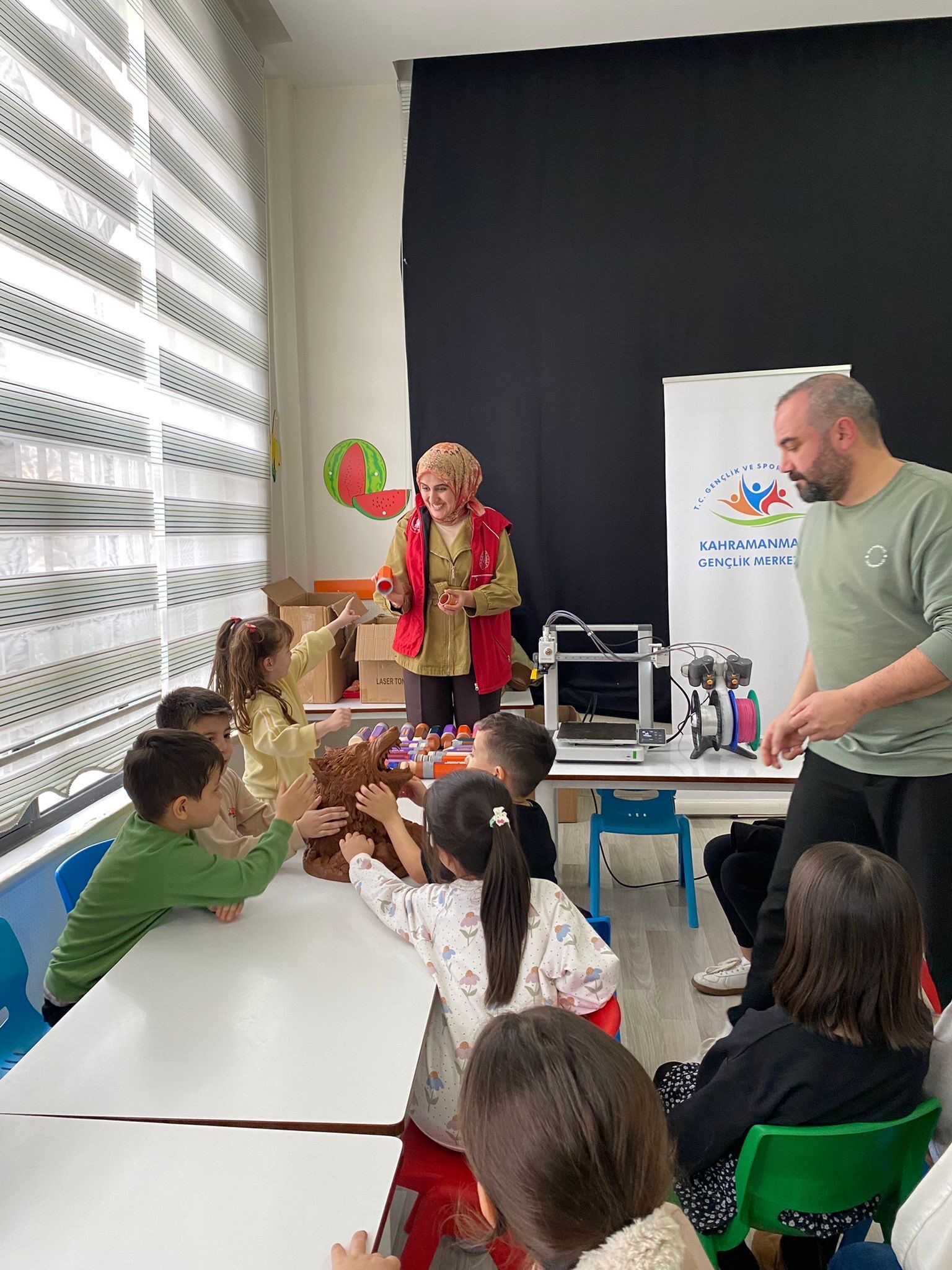 Kahramanmaraş Gençlik Merkezi’nde düzenlenen atölyede öğrenciler, 3D yazıcı teknolojisinin nasıl çalıştığını uygulamalı olarak öğrendi.