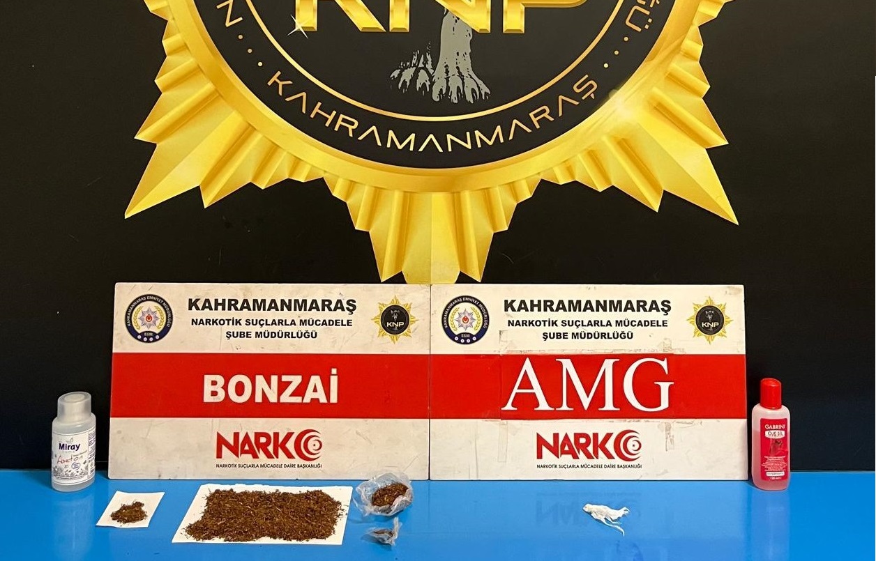 Kahramanmaraş Emniyet Müdürlüğü Narkotik Suçlarla Mücadele Şube Müdürlüğü ekiplerince 15 Şubat 2026 tarihinde gerçekleştirilen operasyonlarda, toplam 9,01 gram metamfetamin, 2,46 gram sentetik kannabinoid (bonzai) ve 0,34 gram esrar maddesi ele geçirildi.