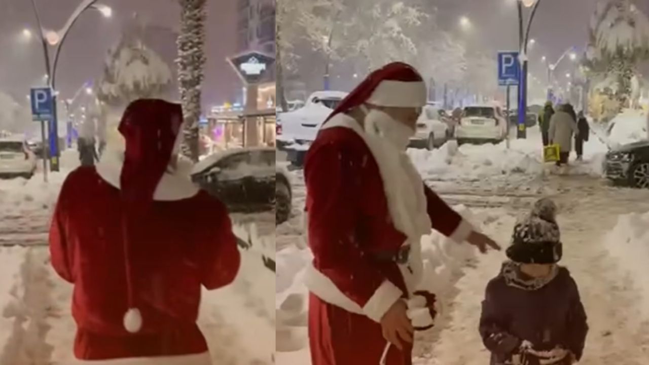 Kahramanmaraş’ta yılbaşı gecesi ortaya çıkan Noel Baba kostümlü bir şahıs, çocuklara hediye dağıtarak renkli ve sıcak görüntülere sahne oldu. Kentin çeşitli noktalarında görülen Noel Baba, yeni yıl coşkusunu sokaklara taşıdı.