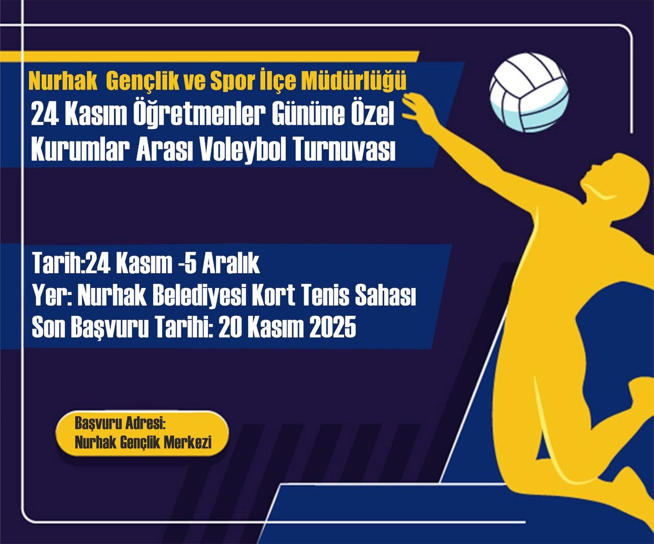 Kahramanmaraş’ın Nurhak ilçesinde 24 Kasım Öğretmenler Günü’ne özel düzenlenecek kurumlar arası voleybol turnuvası için başvurular başladı.