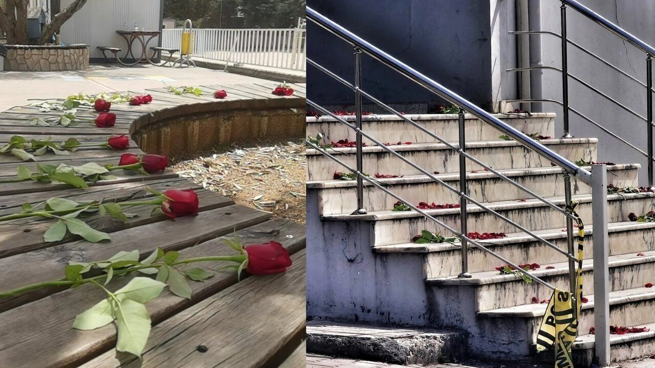 Saldırganın silahlarla dehşet saçarak girdiği okulun girişindeki mermer merdivenler, bugün bir anma alanına dönüştü. Olay yeri inceleme ekiplerinin çalışmalarını tamamlamasının ardından, vatandaşlar ve sağ kurtulan öğrenciler, hayatını kaybeden arkadaşları ve öğretmenleri için merdivenlere kırmızı güller bıraktı. Polis şeritlerinin hemen önüne dağılmış gül yaprakları, dün yaşanan o korkunç kaosun ve dökülen kanın yerini alan bir saygı duruşu niteliğinde. Okulun kapalı olan kapıları önündeki bu manzara, saldırının üzerinden geçen 24 saatin ardından acının ne kadar taze olduğunu bir kez daha kanıtladı.