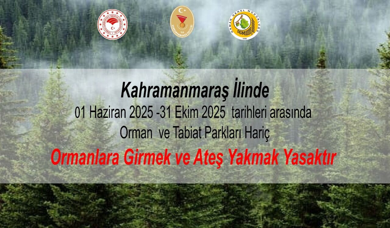 Kahramanmaraş Orman Bölge Müdürlüğü’nden yapılan açıklamada, Orman Yangınlarıyla Mücadele Komisyonu’nun son toplantısında alınan karar doğrultusunda, 6831 sayılı Orman Kanunu ve İl İdaresi Kanunu hükümleri gereğince ormanlara giriş yasağı ilan edildiği belirtildi.