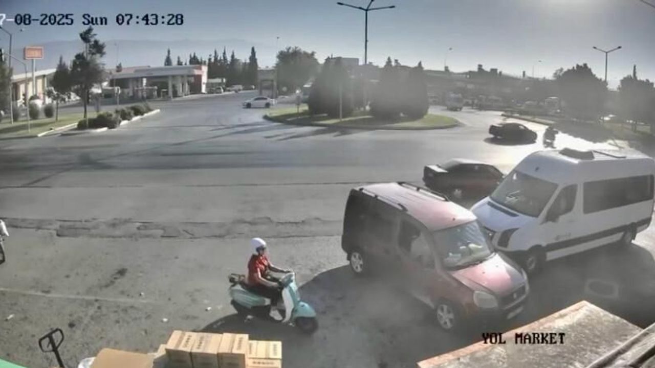 Kahramanmaraş’ın Dulkadiroğlu ilçesinde meydana gelen kazada, otomobilin çarptığı motosiklet sürücüsü metrelerce sürüklendi. O anlar güvenlik kamerasına yansıdı.