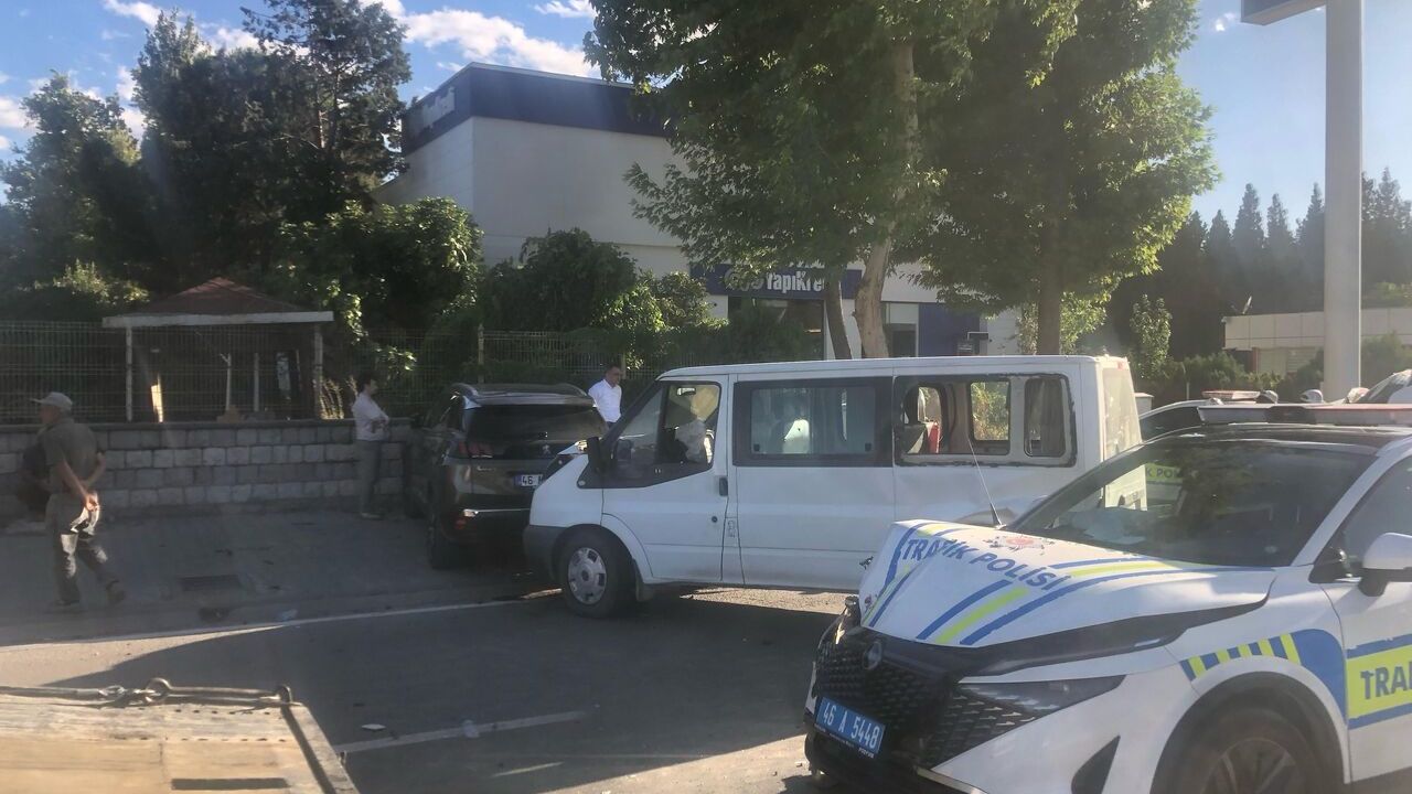 Çarpışmanın etkisiyle kontrolden çıkan minibüs, yol kenarında park halindeki 46 AIZ 246 plakalı otomobile çarparak durabildi.