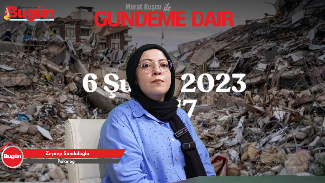 Kahramanmaraş’ta Bugün Gazetesi’nin “Murat Kuşcu ile Gündeme Dair” programının bu haftaki konuğu, Psikolog Zeynep Sandaloğlu oldu. 6 Şubat depremlerinin üzerinden geçen 2,5 yılın ardından, deprem travmalarının psikolojik etkilerini değerlendiren Sandaloğlu, önemli uyarılarda bulundu.