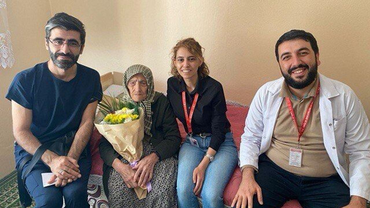 Hastane yönetimi ve sağlık çalışanları, “Sağlıkla Yaş Alma” projesi kapsamında ilçenin en yaşlı bireylerinden biri olan 100 yaşındaki Ümmügülsüm Güneş’i evinde ziyaret etti.