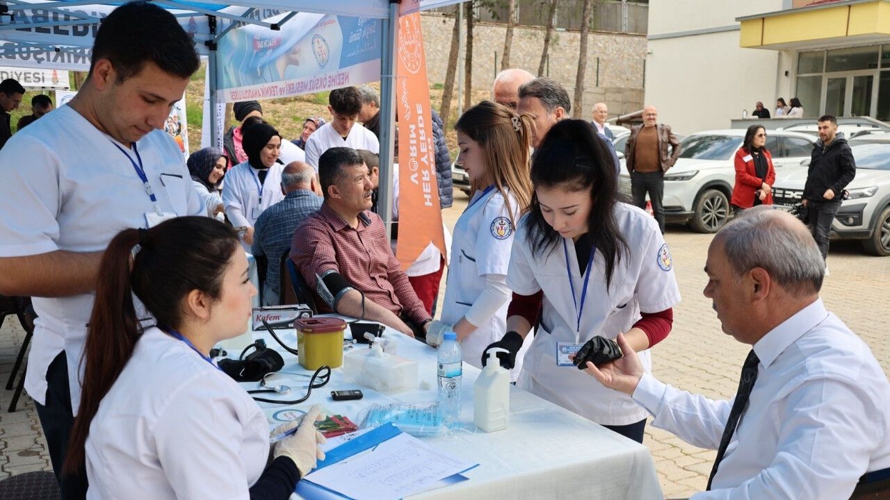 Öğrenciler tarafından tansiyon ve kan şekeri ölçümleri gerçekleştirilirken, temel sağlık parametreleri de değerlendirildi. Bu uygulamalar sayesinde hem öğrenciler mesleki deneyim kazandı hem de katılımcılar sağlık durumları hakkında bilgi sahibi oldu.