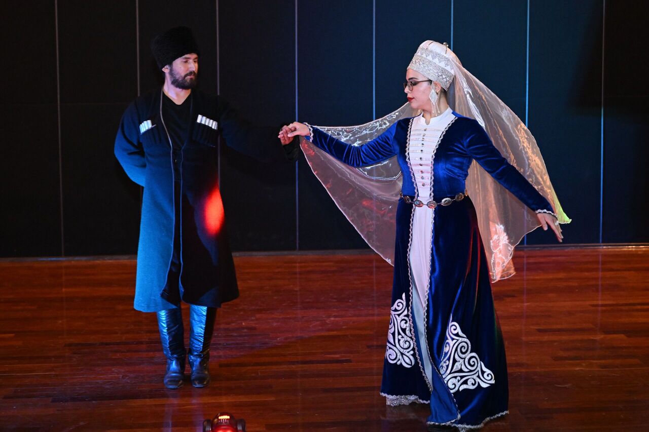 Gösteri Sanatları Öğrenci Topluluğu tarafından hazırlanan programda; Vals, Çerkez, zeybek, oryantal, solo zeybek, roman, halay, Bailando, Flamenko, rueda ve bahçe duvarı oyun havası gibi geniş bir yelpazeye yayılan dans türleri sahneye taşındı.