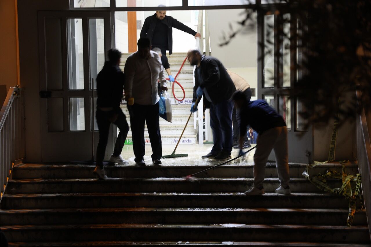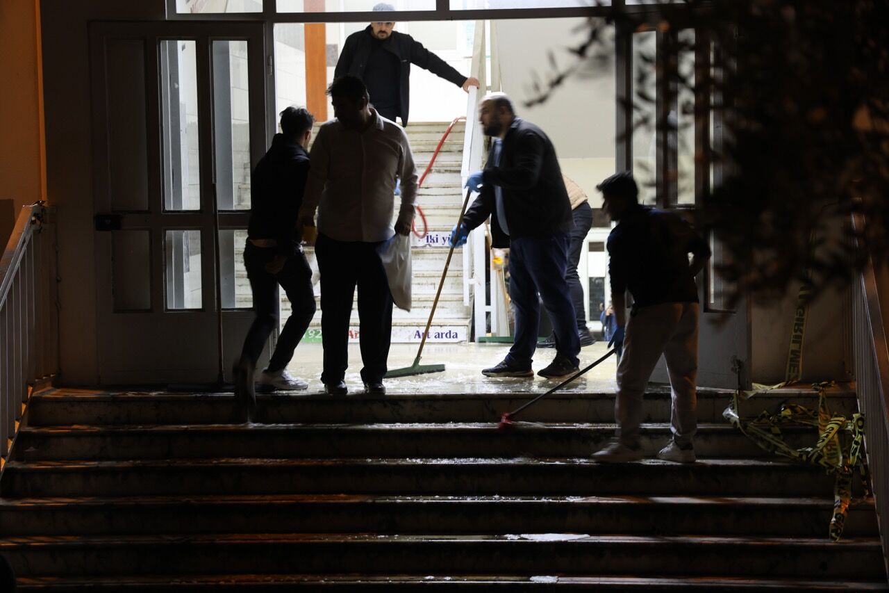 Görevlilerin okulun içini suyla yıkadığı anlar, yaşanan trajedinin büyüklüğünü bir kez daha gözler önüne serdi. Eğitim yuvasının yeniden öğrencilere hazır hale getirilmesi için çalışmaların sabah saatlerine kadar süreceği belirtildi.