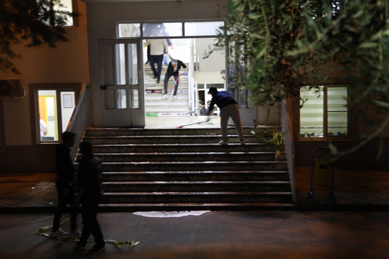 İhlas Haber Ajansı muhabirleri Umutcan İşledici ve Süleyman Cenk İdaye’nin aktardığı görüntülerde, temizlik görevlilerinin sınıfları ve koridorları dezenfekte ederek suyla temizlediği görüldü. İşte katliamın yaşandığı okulda son durum ve gece boyu süren güvenlik önlemleri…