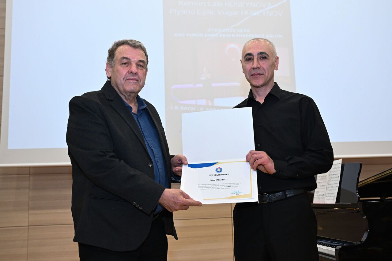 Dinletinin sonunda, KSÜ Rektörü Prof. Dr. Alptekin Yasım’ın eşi Fatma Yasım ve Rektör Yardımcısı, aynı zamanda Güzel Sanatlar Fakültesi Dekanı Prof. Dr. İrfan Ersin Akıncı, katkılarından dolayı Prof. Dr. Lale Hüseynova ve Öğretim Görevlisi Vügar Hüseynov’a teşekkür ederek çiçek ve belge takdiminde bulundu.