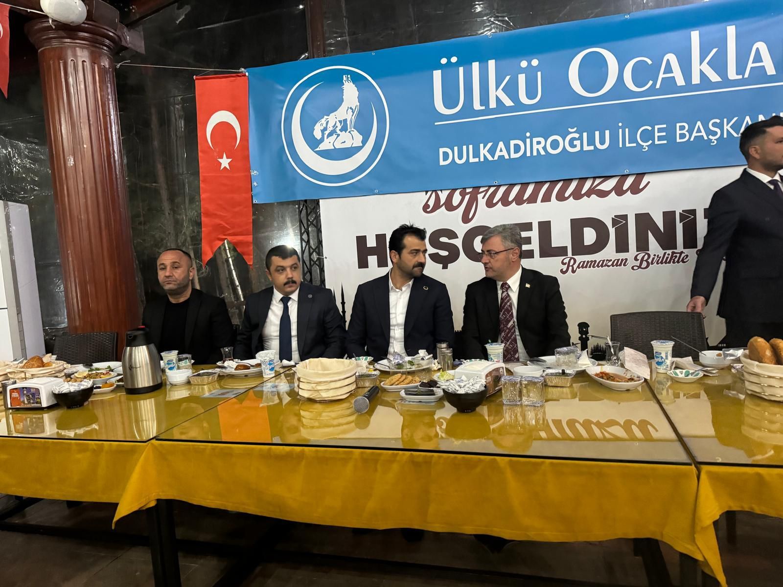 Dulkadiroğlu Ülkü Ocakları ev sahipliğinde gerçekleştirilen iftar programına çok sayıda davetli katıldı. Programa Ülkü Ocakları Kahramanmaraş İl Başkanı Ali Rıza Gedemenli, MHP Kahramanmaraş İl Başkanı Mansur Metehan ve MHP Dulkadiroğlu İlçe Başkanı Muhammet Paçacı da katıldı.