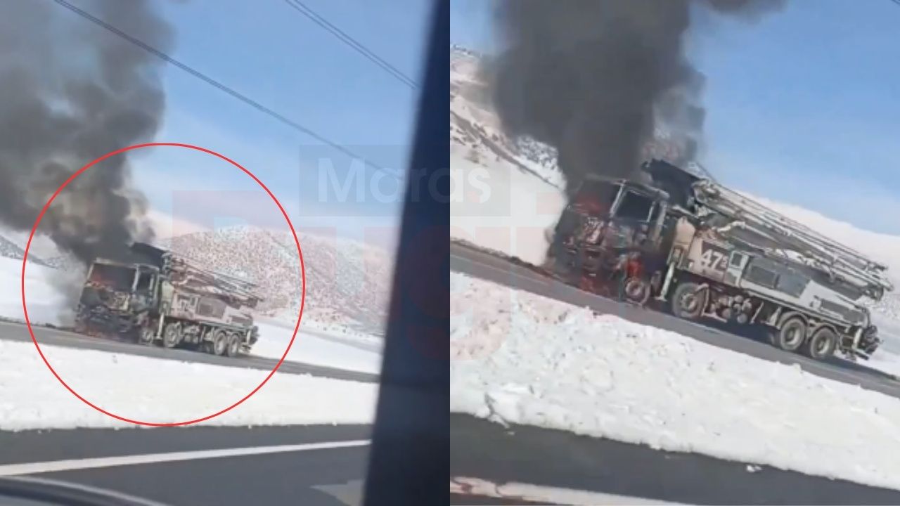 Olay, Kahramanmaraş’ın önemli ulaşım güzergâhlarından biri olan Afşin–Elbistan karayolunda meydana geldi. Henüz bilinmeyen bir nedenle, seyir halindeki bir beton pompası aniden alev aldı. Yolda ilerleyen sürücü, dumanları fark ederek aracı kenara çekti ve yardım çağrısında bulundu.