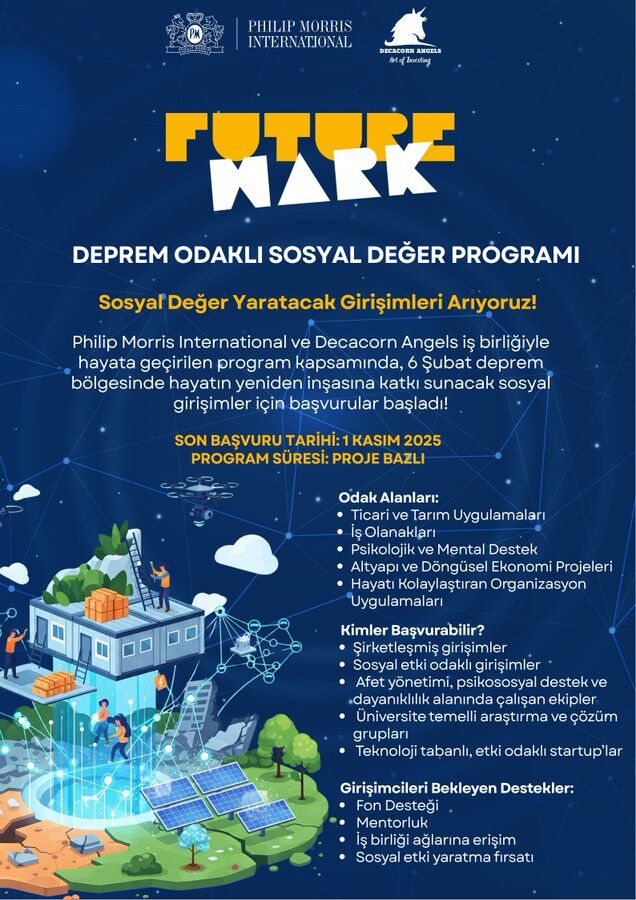 Futuremark, seçilecek projelere fon desteği, mentorluk, iş birliği ağlarına erişim ve sivil toplum kuruluşlarıyla sahada çalışma imkânı sunacak. Programın temel amacı, afetten etkilenen illerde sürdürülebilir sosyal etki yaratmak ve girişimcilerin yenilikçi projeleriyle bölgeye değer katmasını sağlamak.