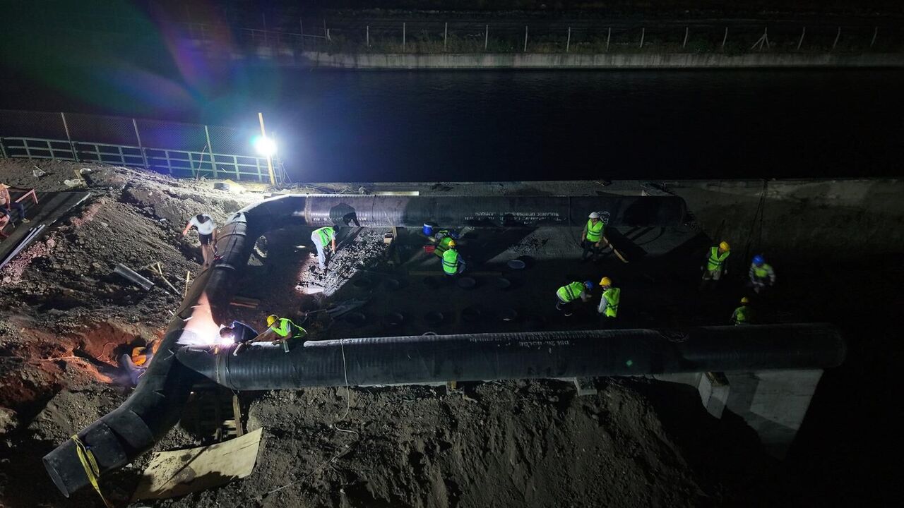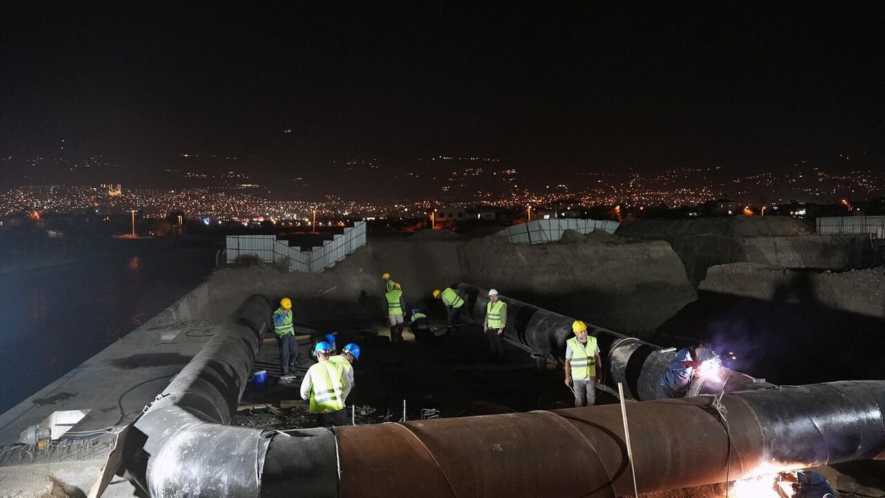 Kılavuzlu Barajı’ndan Ayvalı İçmesuyu Arıtma Tesisi’ne uzanacak hat üzerinde, 24 saat esasına göre yürütülen faaliyetlerle şehrin su arzı geleceğe hazırlanıyor.